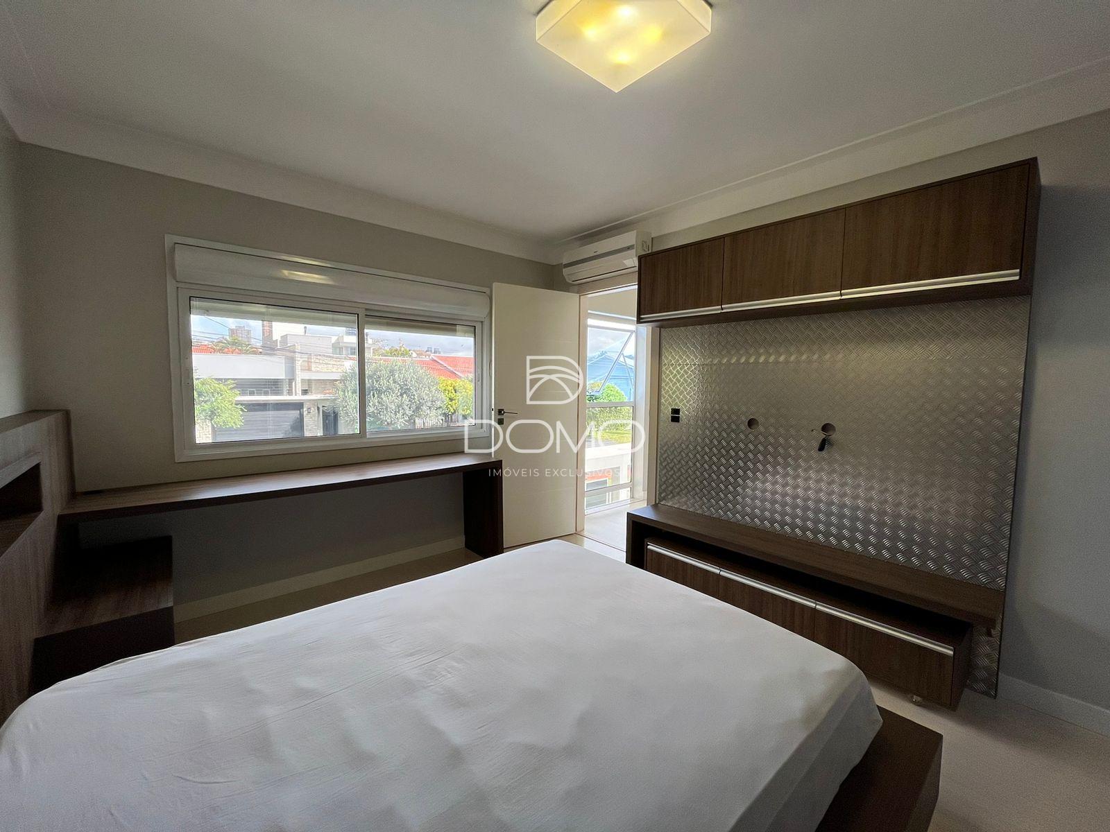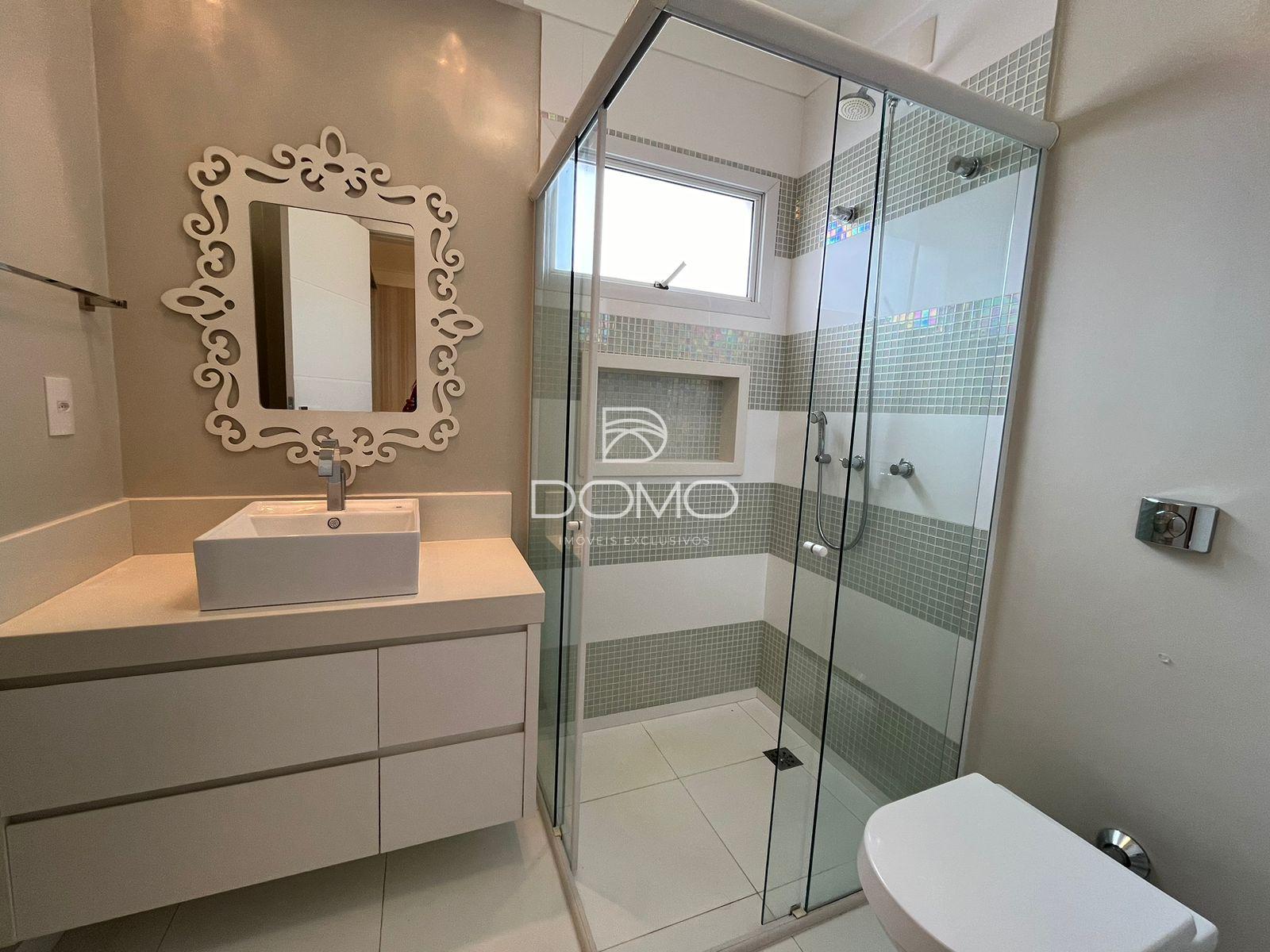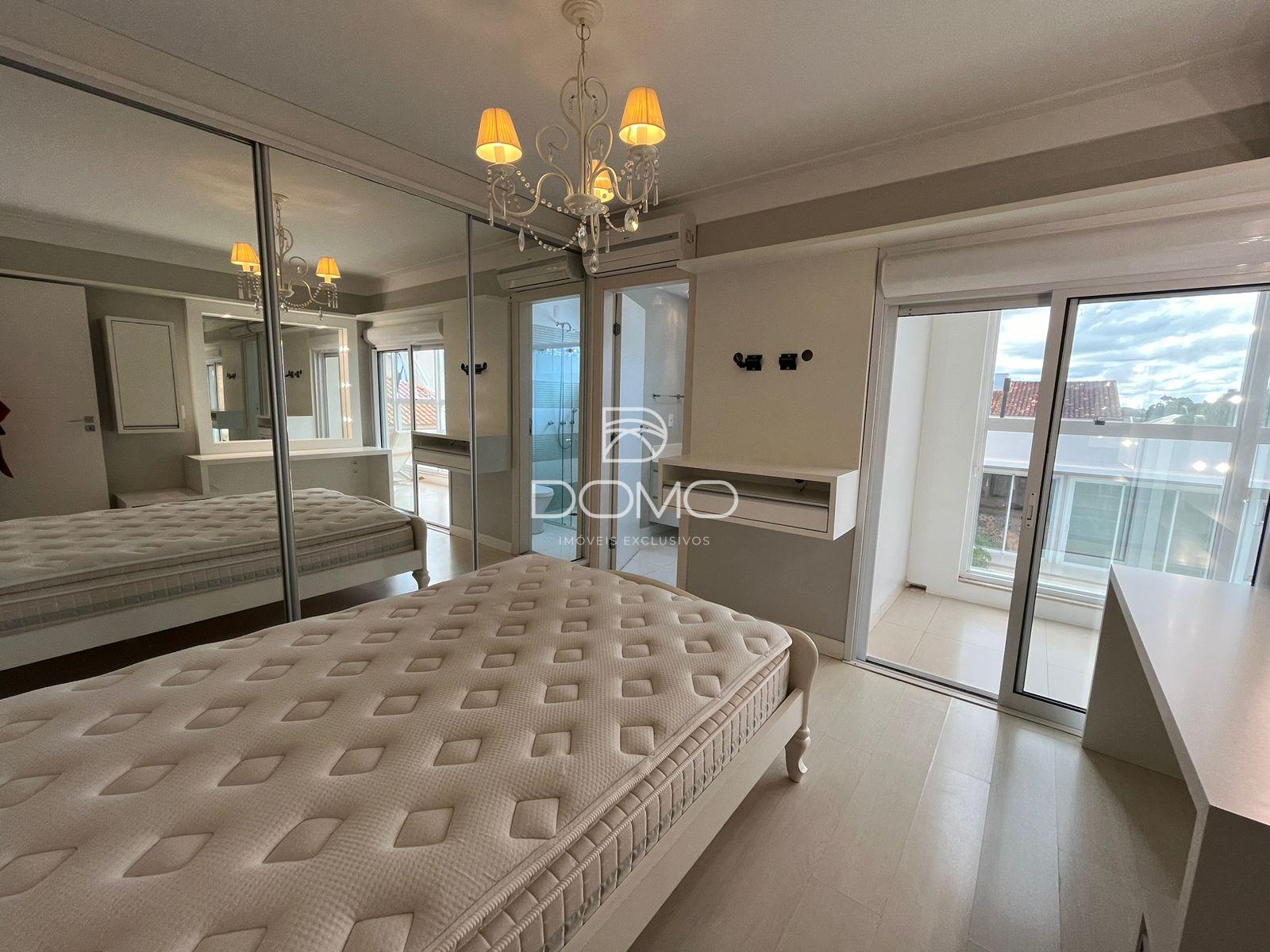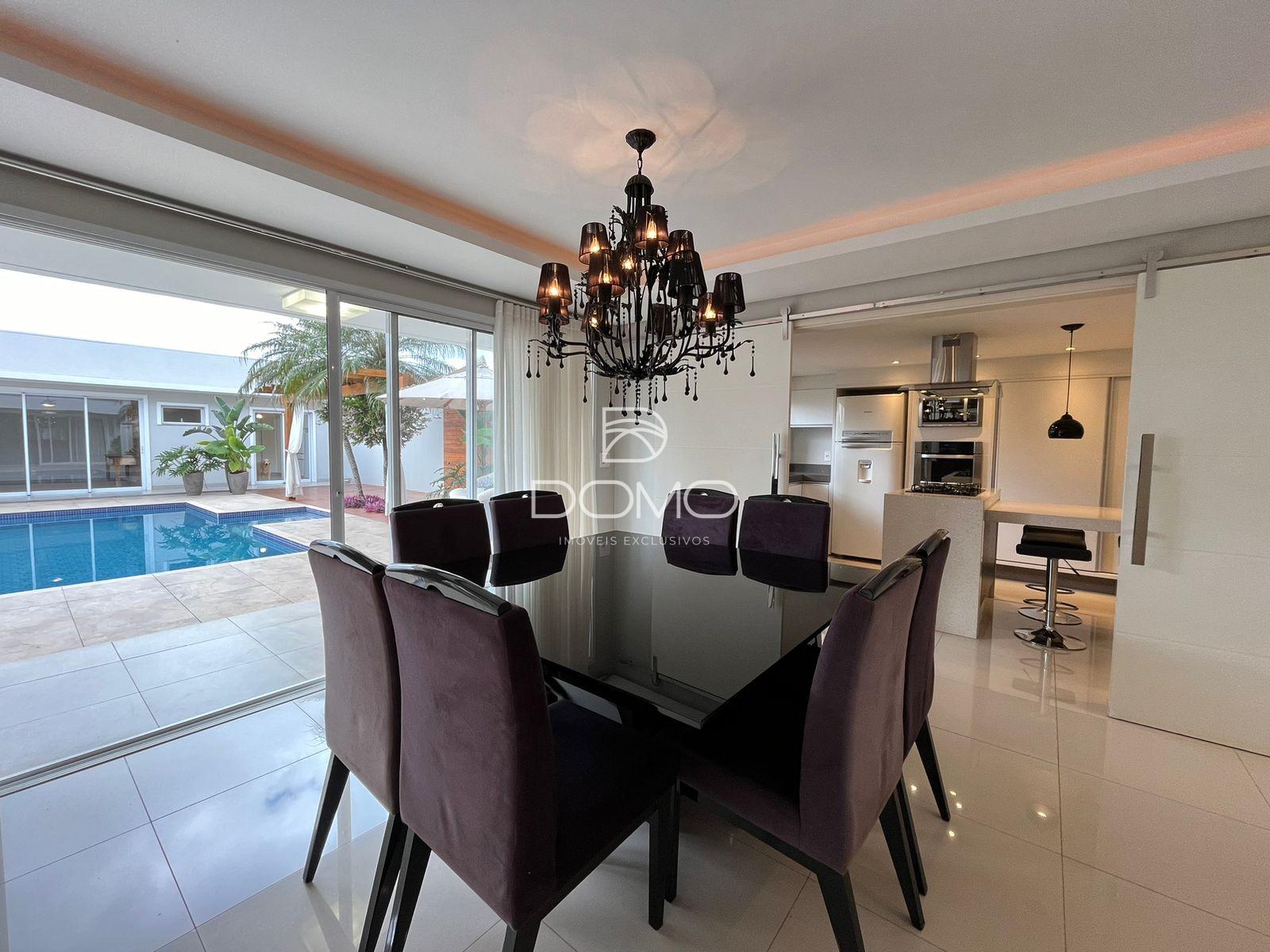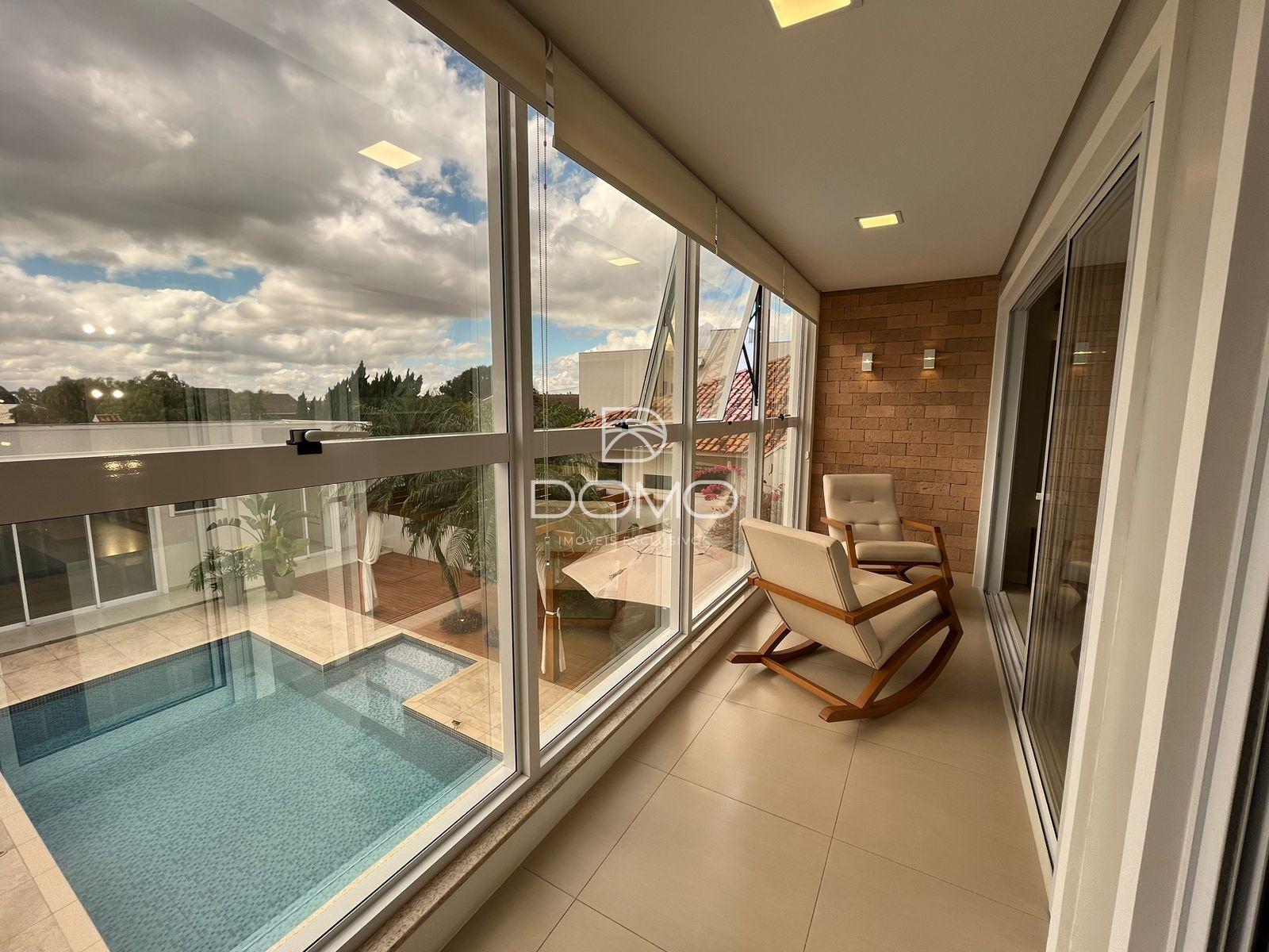 Este sofisticado sobrado de alto padrão reúne conforto, elegância e funcionalidade em cada detalhe. Conta com três suítes mobiliadas, sendo duas delas com sacadas privativas que proporcionam ainda mais charme e bem-estar. Os ambientes sociais são amplos e acolhedores, com salas de estar, jantar com mesa, cadeiras e aparador, além de uma sala de TV ideal para momentos em família. A cozinha é totalmente planejada, prática e moderna, acompanhada de um lavabo e um escritório que garantem comodidade no dia a dia. Para receber com estilo, o imóvel oferece uma edícula completa com churrasqueira, um quarto e um banheiro, perfeita para encontros e celebrações. A lavanderia com armários traz ainda mais organização e praticidade. Na área externa, a piscina aquecida com deck é um convite ao lazer, enquanto a garagem coberta comporta até sete veículos. Com aquecimento solar e a gás, o imóvel alia tecnologia e sustentabilidade, tornando-se a escolha ideal para quem busca exclusividade, conforto e qualidade de vida.