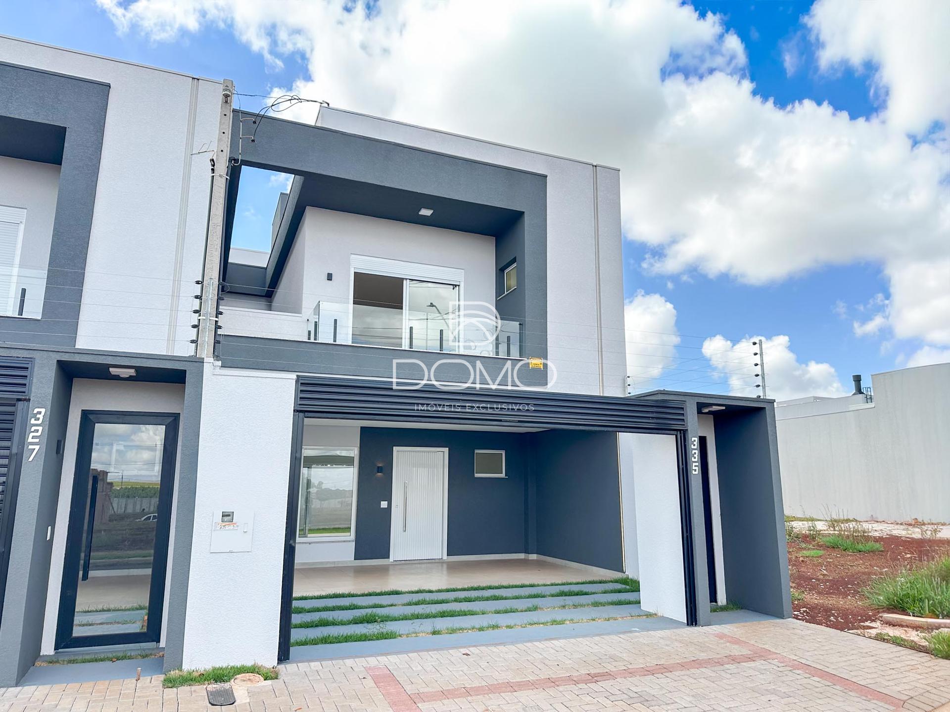 Sobrado na planta à venda no Tropical 4, em Cascavel PR, com 153,43m² de área construída em um terreno de 150,50m². O imóvel conta com 3 suítes, salas amplas, lavabo, cozinha bem distribuída e área de serviço, oferecendo praticidade e conforto no dia a dia.